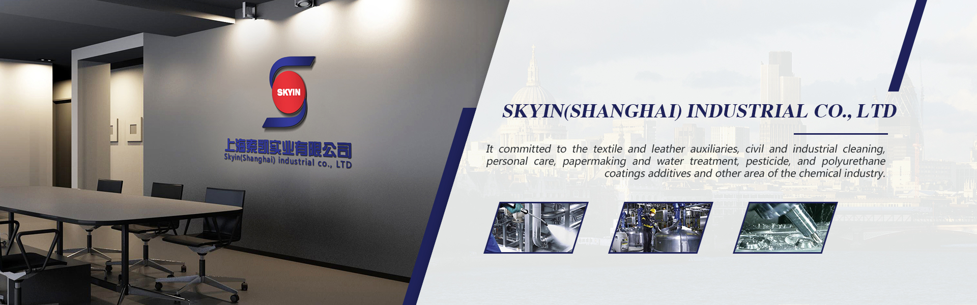 Skyin(Shanghai) industrial co., LTD has the self-management import and export rights. It committed to the textile and leather auxiliaries, civil and industrial cleaning, personal care, papermaking and water treatment, pesticide, and polyurethane coatings additives and other area of the chemical industry. The company can provide high quality raw materials, professional technical consulting, latest market analysis and comprehensive after-sales services. Skyin headquarters is located in Shanghai. Meanwhile, Guangzhou, Tianjin and other places have offices and warehouses that could provide customers timely and thoughtful service.